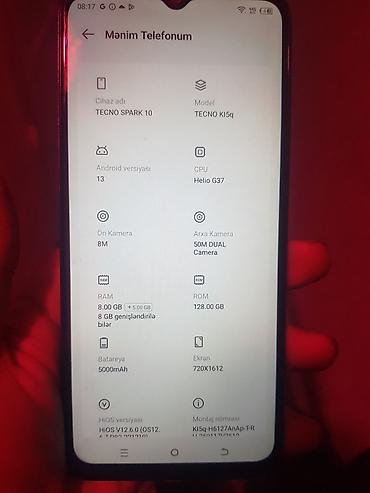 TECNO SPARK Go Ram8 Yaddaş256 Heçbir problemi yoxdur nöktə cızıq belə yoxdu 15gundur alınıb 1il zəmanəti var sadəcə pul lazımdır ona göre satılır 200AZN RİAL ALİCİYA ENDİRİM OLACAQ 077-375-92-11...