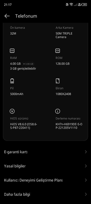 - Sistem: Android 12 əsaslı HiOS 8.6