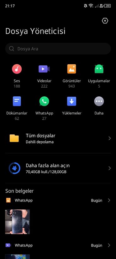 - Fayl menecerində 128 GB yaddaşdan istifadə göstəricisi görünür.
