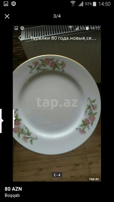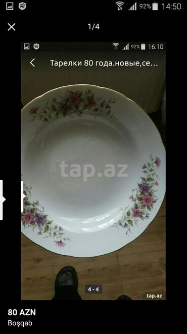 27 ədəd sovuz tarelkası- 6 ədədi 5 manat. 12 ədəd dolma tarelkası - 6 ədədi 4 manat. 23 ədəd aş tarelkası - 6 ədədi 4 manat. 6 ədəd balaca sovuz tarelkası -6 ədədi 3 manat. 5 ədəd şüşə salat qabı ...