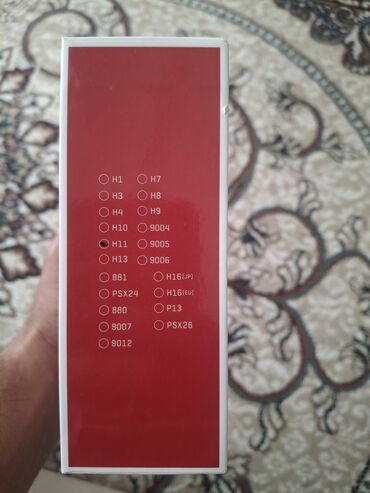 - Soket növü: H11 (qutuda H1, H3, H4, H10, H13, 881, PSX24, 880, 9007, 9012, H7, H8, H9, 9004, 9005, 9006, H16 (JP/EU), P13, PSX26 uyğunluqları da qeyd olunub)