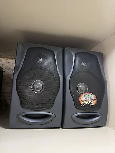 - Komplektdə 2 ədəd səs gücləndirici akustik kolon: ön tərəfdə orta/yüksək tezlik drayverləri və bass refleks portu, üzərində “500 W” işarələnməsi
