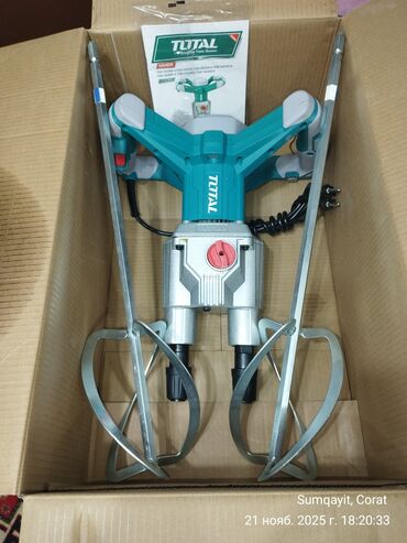 - Qutuda: elektrik mühərrikli gövdə, 2 ədəd spiral qarışdırıcı ucluq, istifadə təlimatı