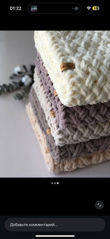 Xüsusi toxuma naxışlı yumşaq pled/örtük/ədyal Hər ölçüdə və rənqdə sifarişlər qəbul olunur. - Material: qalın, məxməri effektli iplik – çox yumşaq və isti tutumlu. - Toxunuş: iri ilməli, səbətvari ...