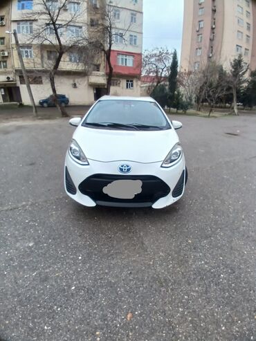 Toyota Aqua (hybrid) – ağ rəng, 5 qapılı hatchback.Avtomobil 1.5 mator
