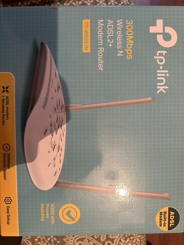 TP-Link TD-W8961N ADSL2+ Wi‑Fi modem/router - Model: TD-W8961N (300Mbps Wireless N ADSL2+ Modem Router) - Simsiz sürət: 300 Mbps, 2.4 GHz - Antenlər: 2 ədəd xarici anten - Portlar: 4x LAN Ethernet...