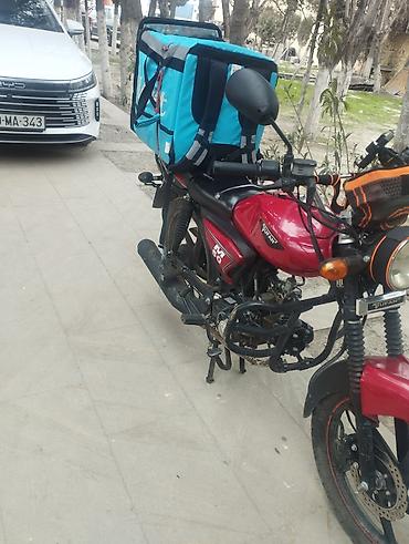 Paket: motosiklet + arxa yükgötürmə rafı + Wolt termal çantası + sükan üzərində əlavə saxlama cibı.