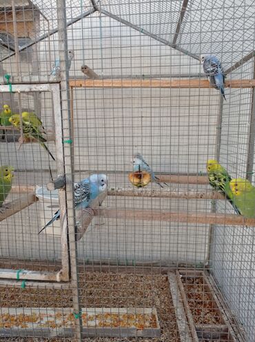 Məhsul: Dalmatin və klassik rənglərdə dalğıç (buğda) dalğalı tutuquşular komplekti 3 u erkekdi 2si disidi - Növlər: Dalğalı tutuquşu (müxtəlif rənglər – tam sarı, yaşıl-sarı, göy-ağ) - Say: Kafes ...