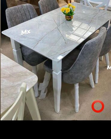 Məhsul 2: Yemək masası (daş naxışlı şüşə üstlü)