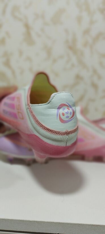 Məhsul: Futbol butsu (konus dişli, bağsız model) - Model üzərində “F50” işarəsi, sürət yönümlü dizayn - Rəng: göy əsas, çəhrayı və ağ detallarla - Bağsız (laceless) üst hissə – elastik geyinmə, sı...