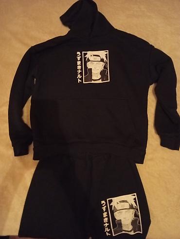 Qara rəngli iki hissəli dəst – kapüşonlu sviter və şort. - Üzərində