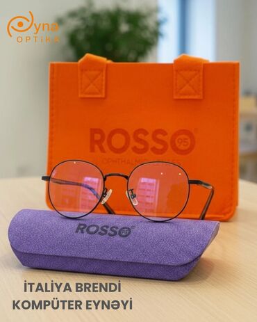 ROSSO 95 kompüter eynəyi Blue-block şüşə, oftalmik eynək çərçivəsi və aksesuar dəsti - Brend: ROSSO 95 - Material: yüngül və möhkəm plastik (asetat tərzində görünüş) - Forma: yumru/oval klassik di...