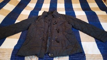- Göy rəngdə, quilted (romb tikişli) nazik qışlıq/qalın payızlıq pencək. Ön hissədə dekorativ bağlama elementləri və gizli fermuar; uzunqol, yüngül və isti. razmeri 44