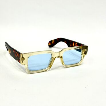 - Çərçivə: qalın, kvadrat formalı; ön hissə şəffaf açıq şampan rəngində asetat, qol hissələri tünd “tortoise” (xallı qəhvəyi) naxışlı.