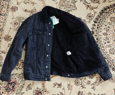 Qara rəngli qışlıq denim jaket S razmer