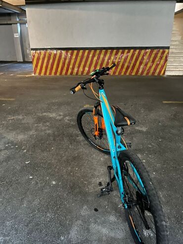 Satılır: şəhər və yüngül off-road üçün dağ velosipedi - Brend/seri: BMX (çərçivədə loqo) - Çərçivə: yüngül ərintili, idman geometriyası; rəng: boz-mavi qradient - Təkərlər: 27.5" (təxmini), geniş ...
