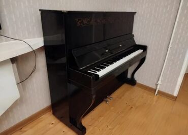 Upright pianino – klassik qara laklı korpus, ön paneldə qızılı naxış ornamentləri. 88 klavişa, 2 pedal (forte və sostenuto/sus pedal funksiyası). Klaviatura örtüyü yuxarıdan sürüşmə tipli, not dayağı inteqrə olunub. Korpusun aşağı hissəsində rezonans bölməsi, yanlarda dekorativ S formalı dayaqlar. Kompakt ölçülü şkaf tipli piano ev və studiya üçün uyğundur, akustik mexanizmlidir, elektrik/ehtiyat hissəsi tələb etmir. Daxili mexanizmlər mexanik çəkicli sistemdir, səssəviyyəni idarə edən yuxarı qapaq açılıb-bağlana bilir. Salon interyerinə uyğun zərif klassik dizayn.