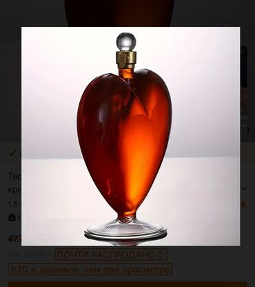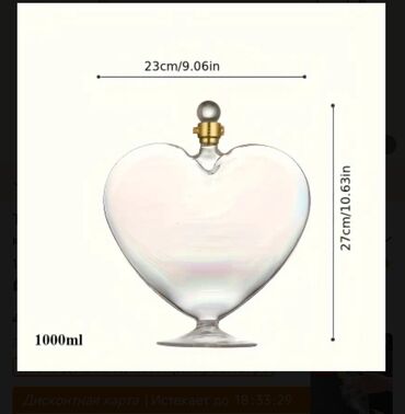 - Dizayn: ürək formasında, sabit dairəvi ayaqlıq, yuxarı hissədə metal detallı çıxarılan şüşə tıxac