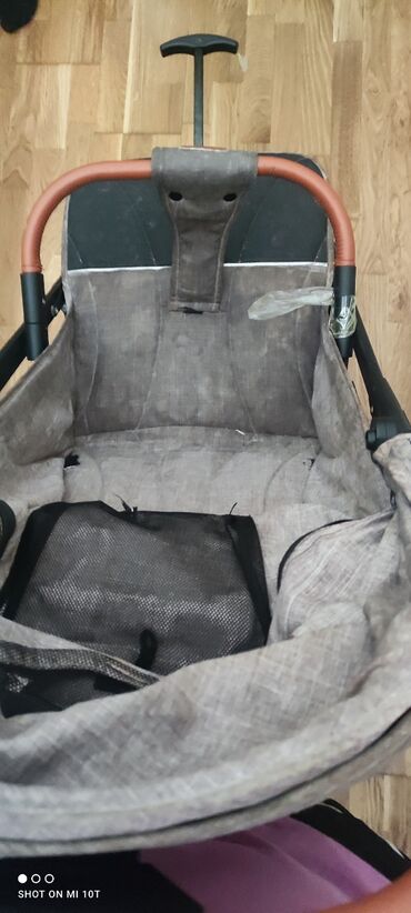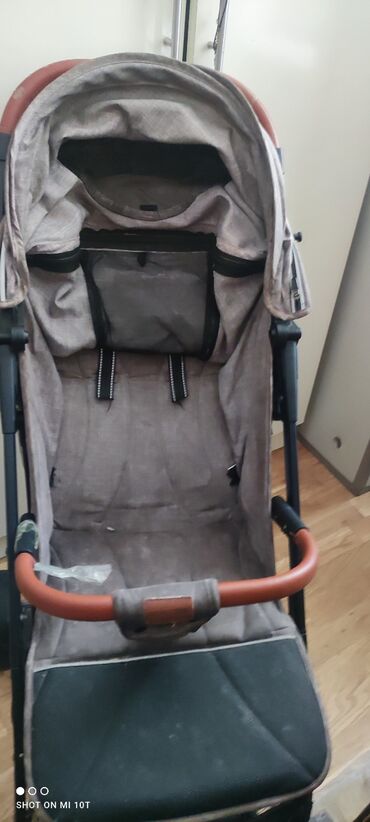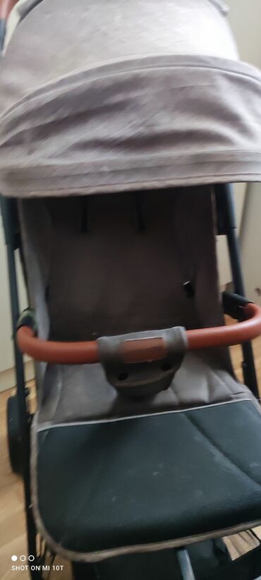 Uşaq arabası – komfortlu və funksional model - Rəng: boz/bej tonlarında tekstil - Güclü metal şassi, iri arxa təkərlər və fırlanan ön təkərlər – hamar və qeyri‑hamar səthlərdə rahat sürüş - Tənzim...