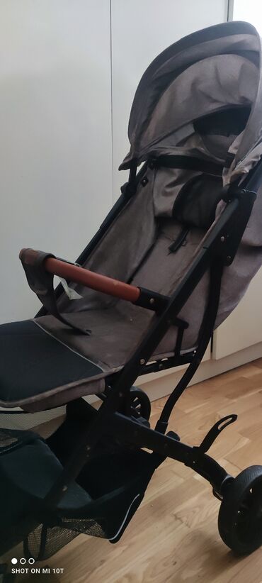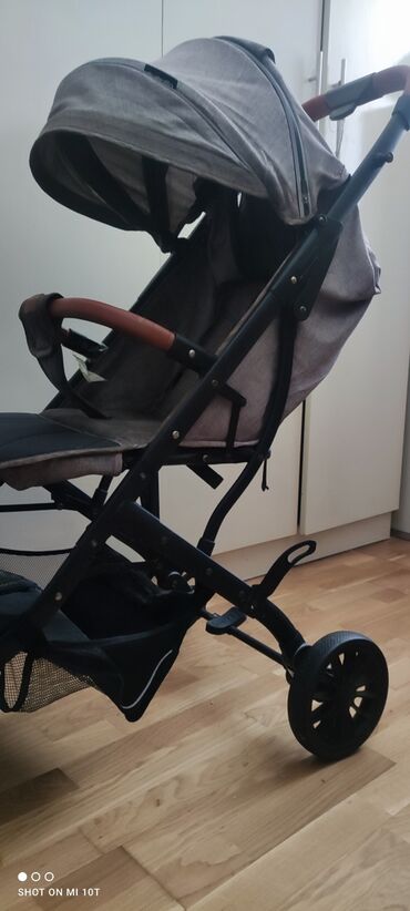 Uşaq arabası – yüngül və funksional model.Yenidi - Rəng: boz, qızılı çərçivə ilə - Markalanma: Boodkapap (etiketdə görünür) - Təkərlər: 4 təkər, ön təkərlər fırlanan, arxa təkərdə ayaq əyləci - Çə...