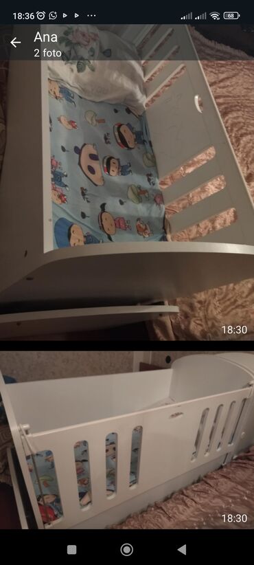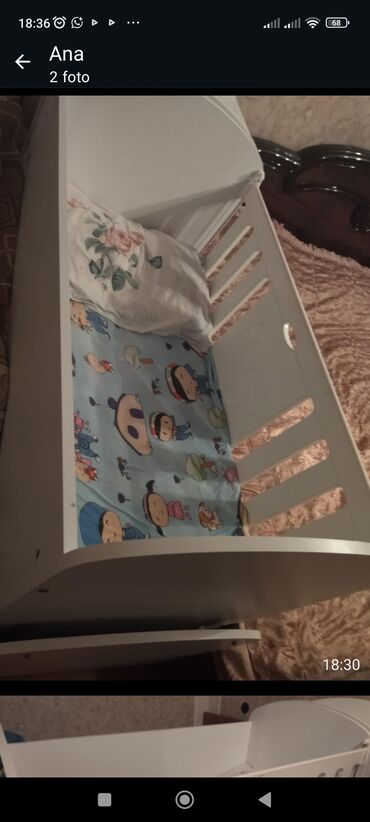 - Komplektdə görünənlər: beşik çərçivəsi; uşaq naxışlı mavi çarşaf və yastıq üzlüyü fotolarda var
