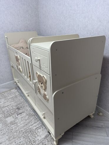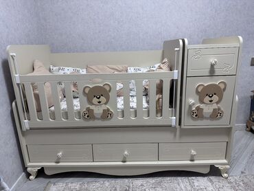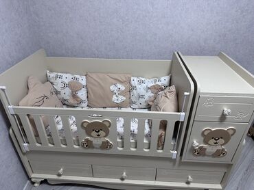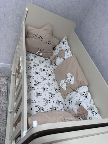 - Ölçülər: standart körpə beşiyi ölçüsünə uyğun (şəkillərdə görünən döşək və yataq dəsti ilə)