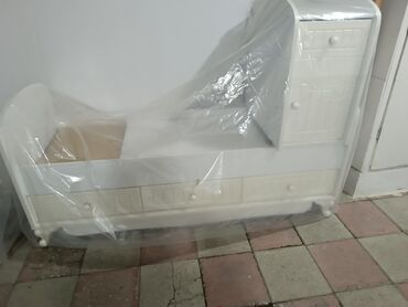 Uşaq/yeni doğulmuş üçün çoxfunksiyalı ağ rəngli çarpayı-komod dəsti.Birce matrasi yoxdur.