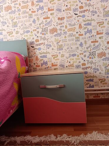 - Yan dolab: 3 açıq rəf + aşağıda 2 çekmece; kitab, oyuncaqlar, aksesuarlar üçün əlverişli.
