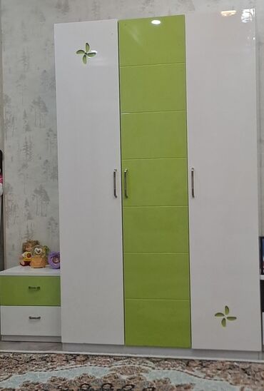 Uşaq/yeniyetmə otağı üçün üç qapılı dolab və uyğun tuman