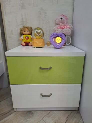 - 2 çəkməcə (üstü yaşıl, altı ağ), metal tutacaqlar.