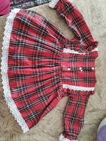 - Parça: yumşaq tartan (qırmızı əsas, tünd yaşıl, qara və sarı xətlər)
