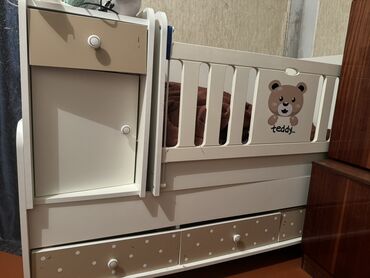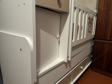 Uşaq beşiyi – çevik funksiyalı kombinə edilmiş model matrasi ilə birgə satılır Xüsusiyyətlər: - Material: ağ rəngli MDF/taxta konstruksiya, möhkəm karkas - Yanlıq: şaquli şüşəbəndsiz barmaqlıq, sür...