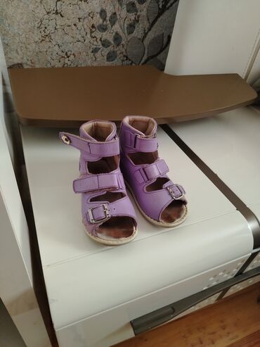Uşaq üçün ortopedik sandal/ayakkabı - Model: bağcıqlı, açıq burunlu, yüksək bilekli - Rəng: çəhrayı-bənövşəyi tonlarda, yan panellərdə “girl”, ürək, ulduz və sosial ikonlardan ibarət rəngli print ...