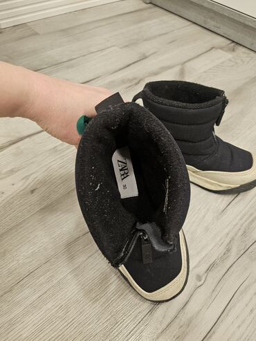 Məhsul: Uşaq qış çəkmələri - Brend: ZARA - Rəng: Qara - Ölçü: 29 (daban üzərində qeyd olunub) - Model: Qısa boğazlı, yumşaq süet effektli üst - İçi: Qalın, tüklü/isti astar (açıq boz rəng) – soyuq...Giriş•Qeydiyyat
