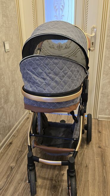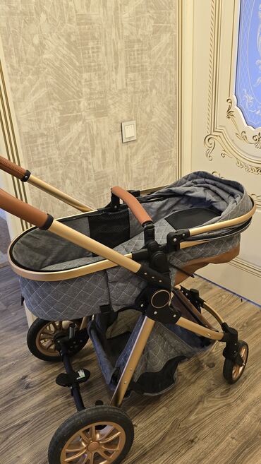 Uşaq arabası – transformasiya olunan model - 2-si 1-də: beşik tipli lyulka və oturacaq rejimi. Körpə üz-üzə və ya hərəkət istiqamətinə baxa bilər. - Möhkəm alüminium/qızılı çərçivə, süni dəri tuta...Giriş•Qeydiyyat