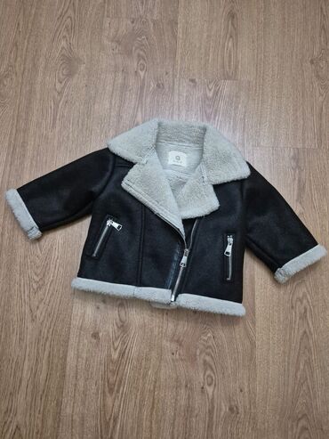 Uşaq üçün süni dəridən “aviator” üslubunda qısa kürk gödəkçə.