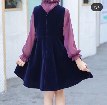 - Rəng: Tünd göy (məxmər hissəli), altında bənövşəyi şəffaf şifon bluz görünüşü ilə kombinə