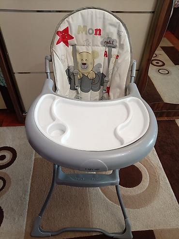 Uşaq yemək stulu - Rəng: boz-ağ gama - Önündə geniş çıxarılan/plastik