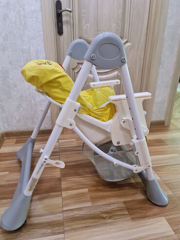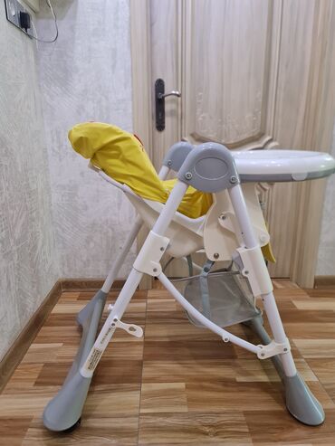 Uşaq yemək stulu - Bir təkəri qırıq olduğu üçün ucuz satılır -maçalkası da var - Rahat və təhlükəsiz dizayn: yumşaq oturacaq, 5 nöqtəli təhlükəsizlik kəməri. - Tənzimlənə bilən: arxalıq və oturacaq...