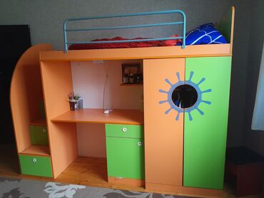 Uşaq üçün funksional iki mərtəbəli dəst: çarpayı + iş masası + şkaf və çekmecələr.