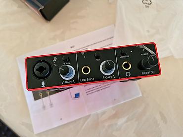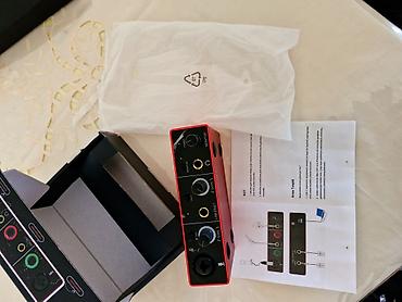 Səs kartı Focusrite Scarlett Solo 4th Gen. Bir həftə istifadə edilib. Problemi yoxdur. Qutusu var