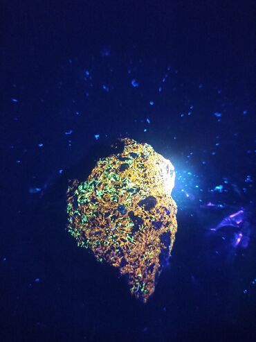 Təbii daşımız - şəkillərə diqqət etsəniz tester cihazı ilə yoxlanılıb(yüksək dəyər qazanır) və Uv365 şüası altında fərqli rəng çalarlarına bürünür. Orginal görüntüsü çox parlaq və kristalvaridir.