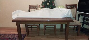 - Ölçü (təxmini): masa standart 6 nəfərlik formatda, ortadan açılaraq daha uzun ola bilir