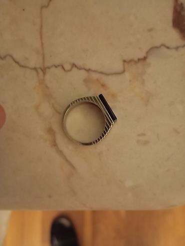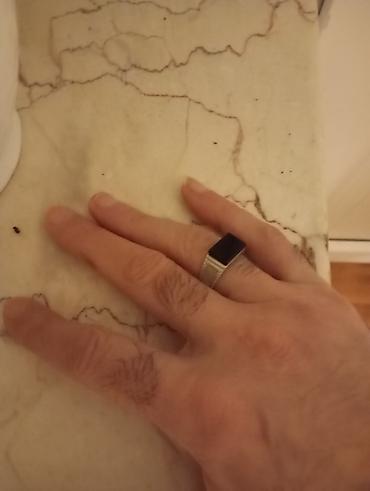 Kişi üzüyü – gümüş tonunda korpus, üst hissədə düzbucaqlı qara daş (onyx tipli görünüş).