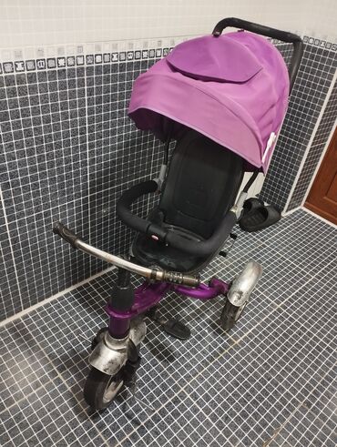 Uşaq üçtəkərli velosiped-araba (tricycle) – bənövşəyi rəngdə, günlük və valideyn üçün idarəetmə tutacağı ilə. Xüsusiyyətlər: - Valideyn üçün hündürlüyü tənzimlənən itələmə tutacağı, dönmə mexanizm...