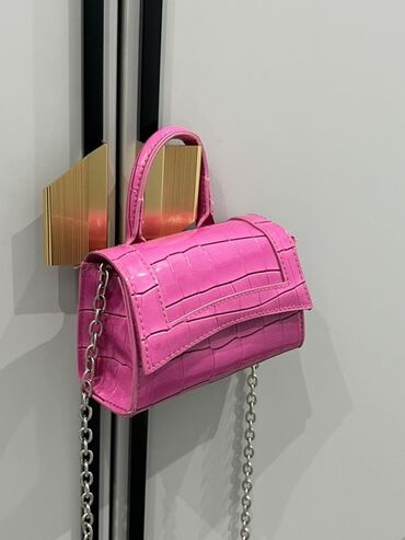 Mini çanta – parlaq çəhrayı, krokodil teksturalı
