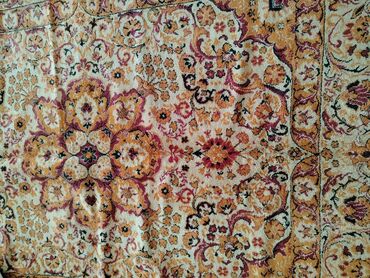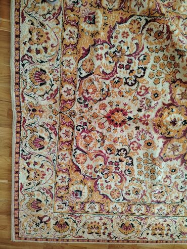 Klassik naxışlı xalça - Ölçü: təxmini 2 x 3 m (rəqəmlər fotolara əsasən təxmini göstərilib) - Rəng palitrası: bej fon, tünd qırmızı və qızılı-krem ornamentlər - Dizayn: mərkəzdə oval medalyon, gen...