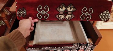 Mebel: 2 ədəd yumşaq kreslo dəsti - Rəng: zeytun-yaşıl, üzərində naxışlı/parça örtüklə bir yerdə