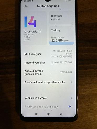 - Sistem: MIUI Global 14.0.3 (Android 12 bazalı), Azərbaycan dili interfeys dəstəyi