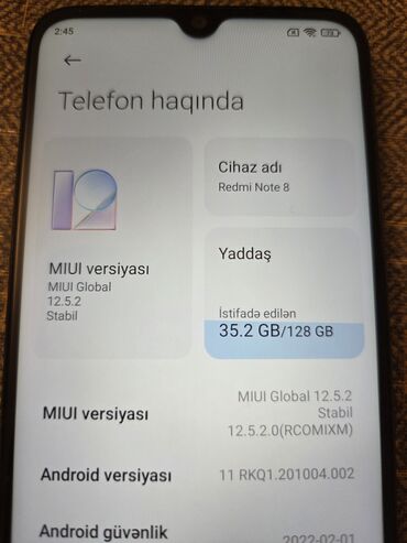 - Yaddaş: 128 GB daxili yaddaş (şəkildə 35.2 GB istifadə olunub)